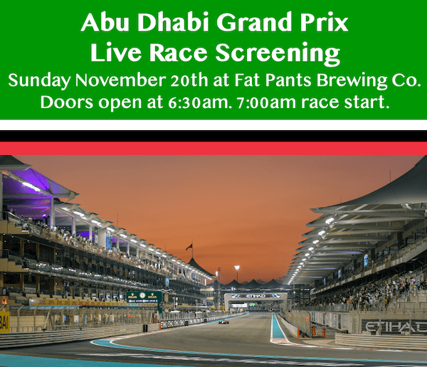 Join Us Sunday, November 20th, for the Abu Dhabi Grand Prix