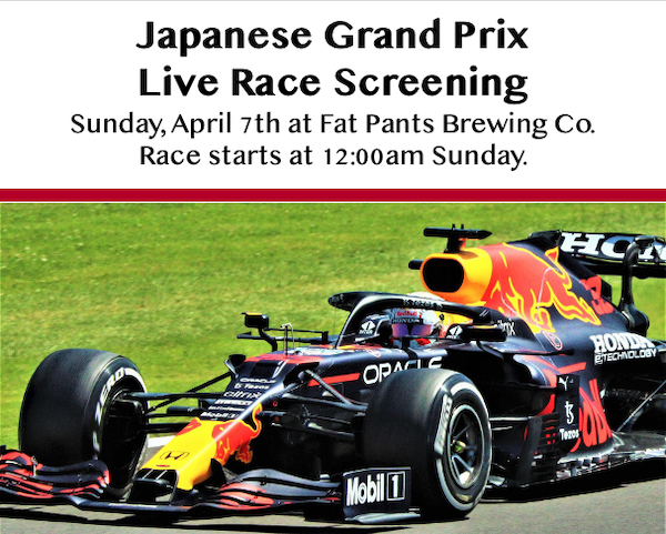 Formula 1 is heading to Suzuka for the Japanese Grand Prix and off returning to Fat Pants Brewing Co. to catch the race live. Come join us to catch the race , grab a brew, and hang out with the local F1 enthusiast crew. What: Japanese Grand Prix Live Race Screening When: Sunday, April 7thContinue reading “Join Us Sunday, April 7th, for the Japanese Grand Prix”