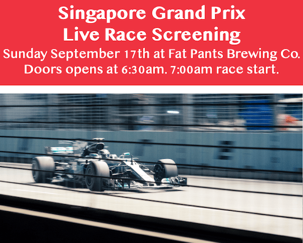 Formula 1 is heading to the Marina Bay Street Circuit for the Singapore Grand Prix and we’re off to Fat Pants Brewing Co to catch the race live. Join us to enjoy brunch, a brew or two, and hang with the local Twin Cities F1 crew. What: Singapore Grand Prix Live Race Screening When: Sunday, September 17thContinue reading “Join us Sunday September 17th for the Singapore Grand Prix”