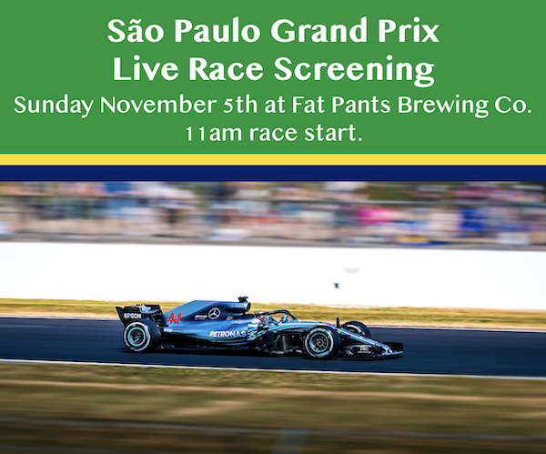 Formula 1 is heading to the Interlagos Circuit the Sao Paulo Grand Prix and we’re off to Fat Pants Brewing Co to catch the race live. Join us to enjoy bites, a beverage or two, and to hang with the local Twin Cities F1 crew. What: Sao Paulo Grand Prix Live Race Screening When: Sunday, November 5thContinue reading “Join us Sunday, November 5th, for the Sao Paulo Grand Prix”