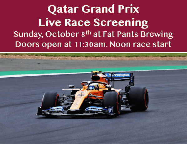 Formula 1 is heading to the Losail Circuit for the Qatar Grand Prix and we’re off to Fat Pants Brewing Co to catch the race live. Join us to enjoy brunch, a brew or two, and hang with the local Twin Cities F1 crew. What: Qatar Grand Prix Live Race Screening When: Sunday, October 8th – GreenContinue reading “Join us Sunday October 8th for the Qatar Grand Prix”