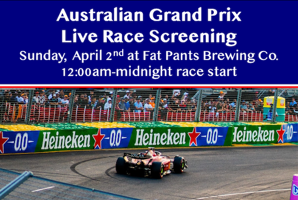 Formula 1 heads to the Albert Park in Melbourne for the Australian Grand Prix. We’ll be heading back to Fat Pants Brewing in Eden Prairie to catch the early-morning race live from flag to flag. We hope you’ll join us. What: Australian Grand Prix Live Race Screening When: Sunday, April 2nd – Race starts atContinue reading “Join Us Sunday, April 2nd, for the Australian Grand Prix”