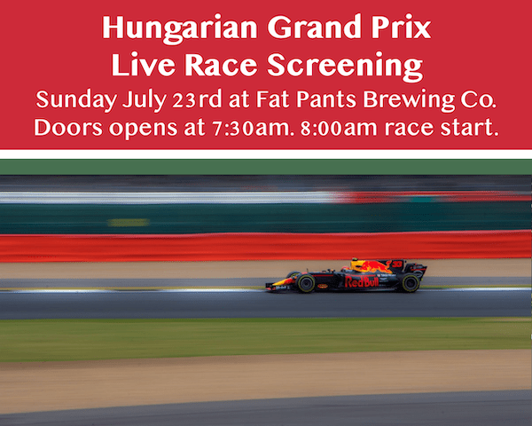 Formula 1 is heading to the Hungaroring Circuit for the Hungarian Grand Prix and we’re getting together to watch the race live. Join us at Fat Pants Brewing Co to catch the race , enjoy brunch, a brew or two, and hang with the local Twin Cities F1 crew. What: Hungarian Grand Prix Live Race Screening When:Continue reading “Join us Sunday, July 23rd, for the Hungarian Grand Prix”