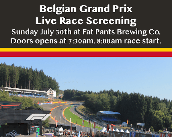 Formula 1 is heading to Spa for the Belgian Grand Prix and we’re getting together to watch the race live. Join us at Fat Pants Brewing Co to catch the race , enjoy brunch, a brew or two, and hang with the local Twin Cities F1 crew. What: Belgian Grand Prix Live Race Screening When: Sunday, JulyContinue reading “Join us Sunday July 30th for the Belgian Grand Prix”