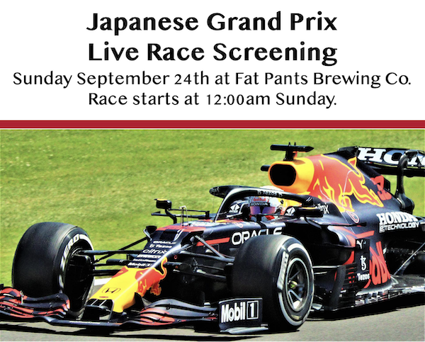 Formula 1 is heading to the Suzuka Circuit for the Japanese Grand Prix and we’re off to Fat Pants Brewing Co to catch the race live. What: Japanese Grand Prix Live Race Screening When: Sunday, September 24th – Green flag drops at 12 midnight. Arrive Saturday night to grab a seat, a brew and to bench race withContinue reading “Join us Sunday September 24th for the Japanese Grand Prix”